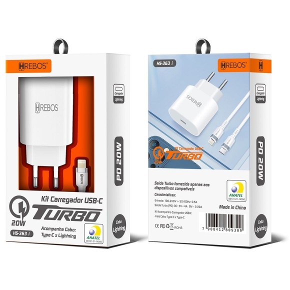 CARREGADOR TURBO PD 20W TIPO C PARA IPHONE HS-363i (R#)