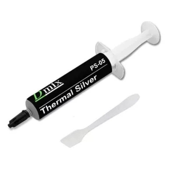 Características do produto:– Quantidade: 5g– Condutividade de 3,05 W/MK– Viscosidade de 10.000– Densidade de 2,5 G/CM3– Cor: Cinza– Acompanha pazinha A pasta térmica prata PS-05 da Dmix é uma ótima escolha para você que tem um computador ou notebook que está esquentando absurdamente.Com está pasta térmica o seu processador vai trabalhar da melhor maneira.
