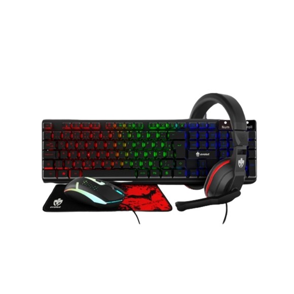 KIT GAMER STARTER LED MOUSE / TECLADO / HEADSET / PAD – EG-54 - EVOLUT