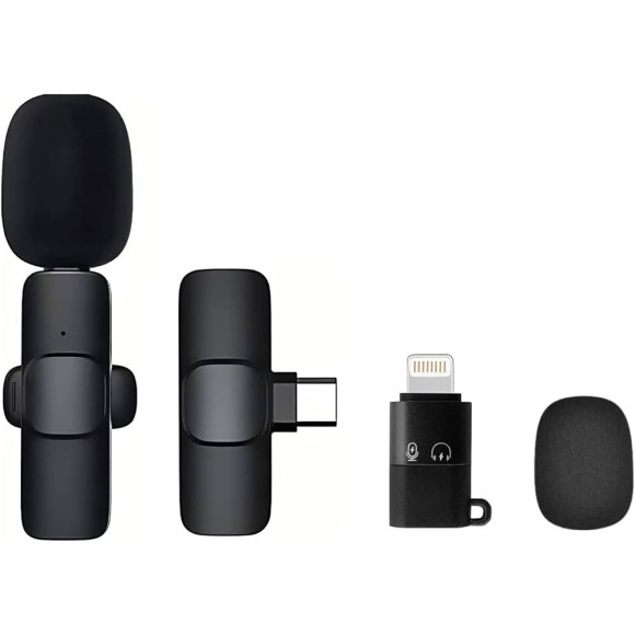 Microfone de lapela sem fio para dispositivos IOS e Android, redução de ruído, projetado para gravação, entrevista, transmissão ao vivo no YouTube, TikTok, Facebook. (sem APP ou Bluetooth necessário)