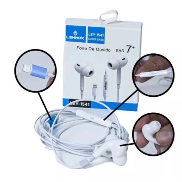FONE DE OUVIDO COM FIO ENTRADA LIGHTNING LEHMOX LEY-1541