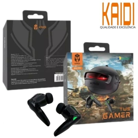 Fone Bluetooth Gamer Sem Fio TWS da Kaidi Modelo Kd-777