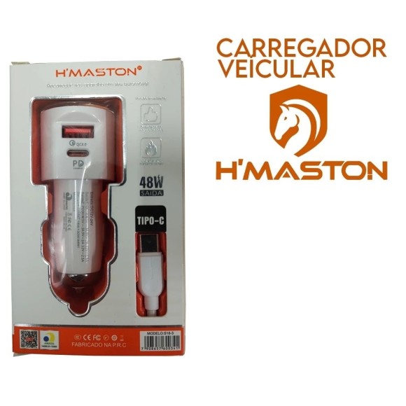 CARREGADOR VEICULAR H'MASTON 48W USB 3.0 TIPO C - USB/TIPO C S18-3