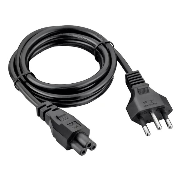 - Cabo de energia tripolar para notebook compatível com padrão 110v/220v.