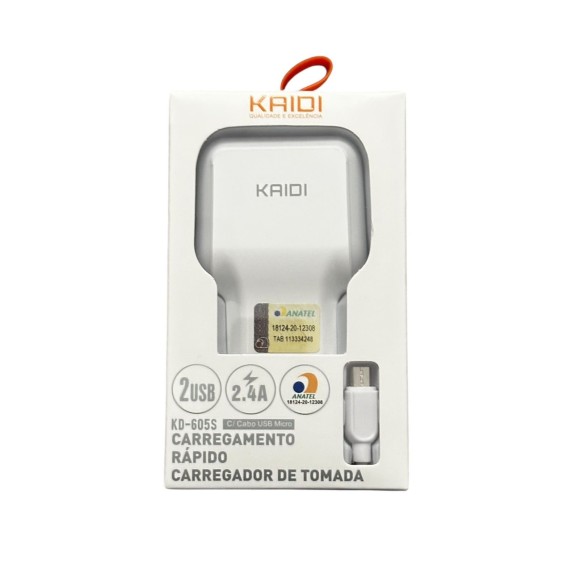 CARREGADOR RAPIDO KAIDI KD-605S V8 2USB 2.4A