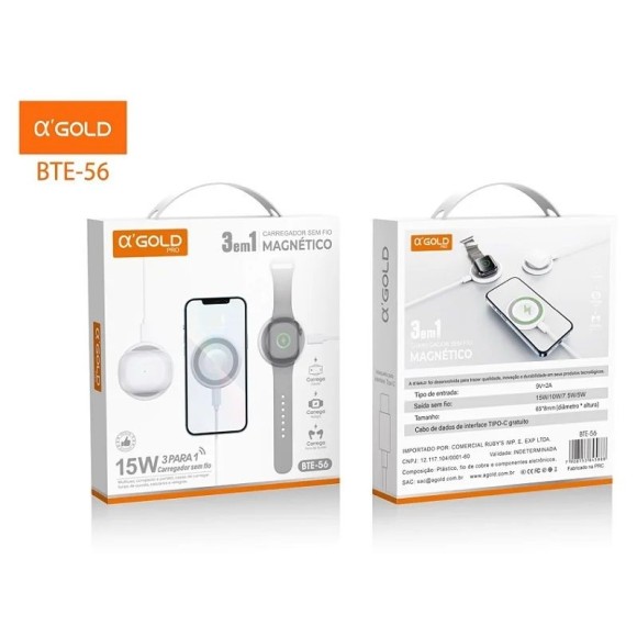 CARREGADOR 3 EM 1 MAGNETICO AGOLD BTE-56
