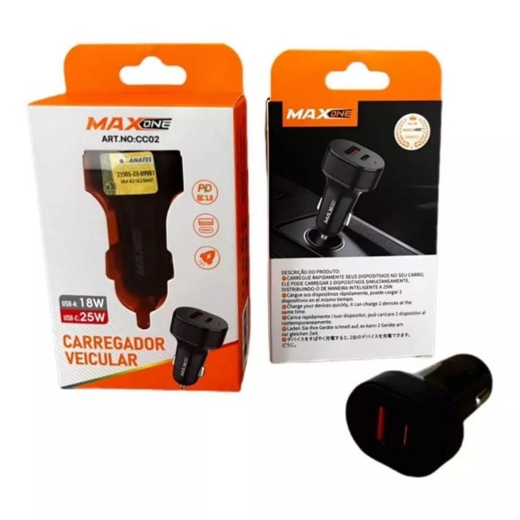 CARREGADOR VEICULAR 18W USB C -25W MAXONE CC02 (R#)