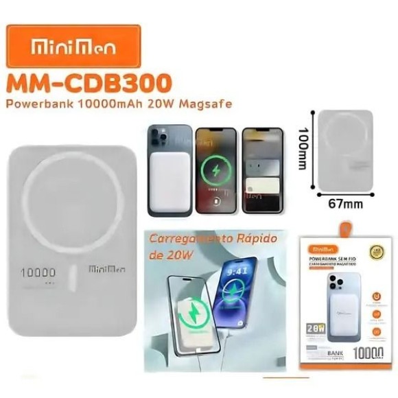 POWERBANK SEM FIO CARREGADOR MAGNETICO 10000MAH 20W MM-CDB300 MINIMEN (R#)