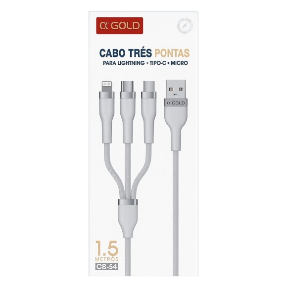 CABO 3 PONTAS LIGHTNING-TIPO C-MICRO 1.5M CB-54 AGOLD (R#)