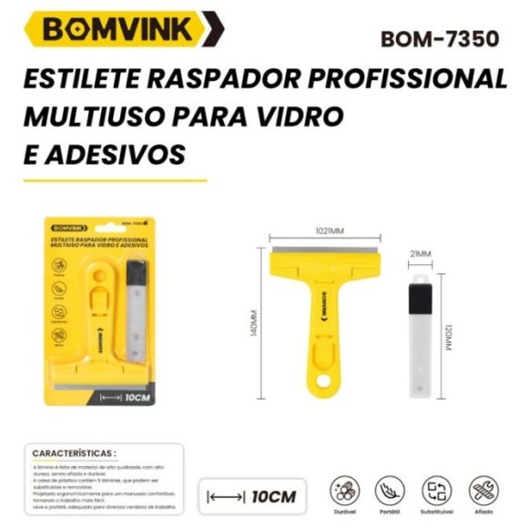 ESTILETE RASPADOR PROFISSIONAL PARA VIDRO BOM-7350