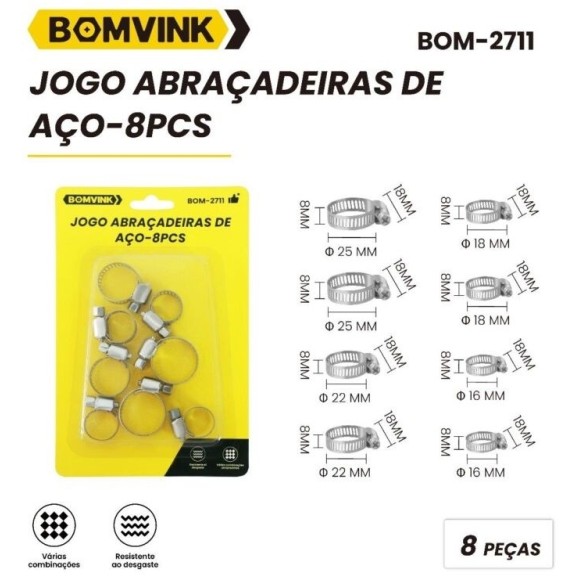 JOGO ABRAÇADEIRAS DE AÇO 8 PEÇAS BOM-2711 (R#)